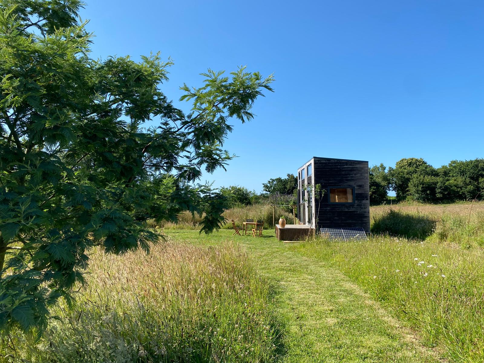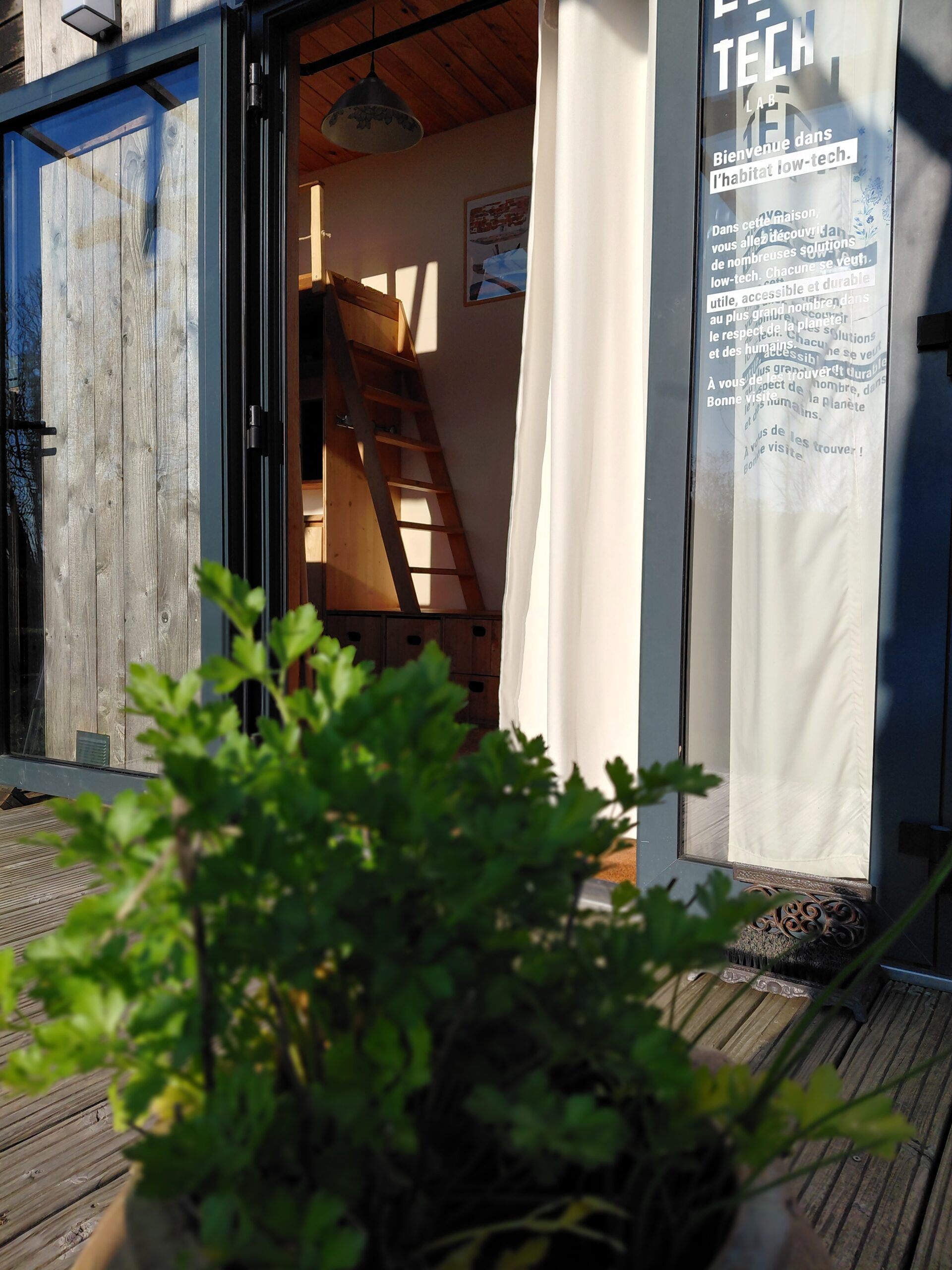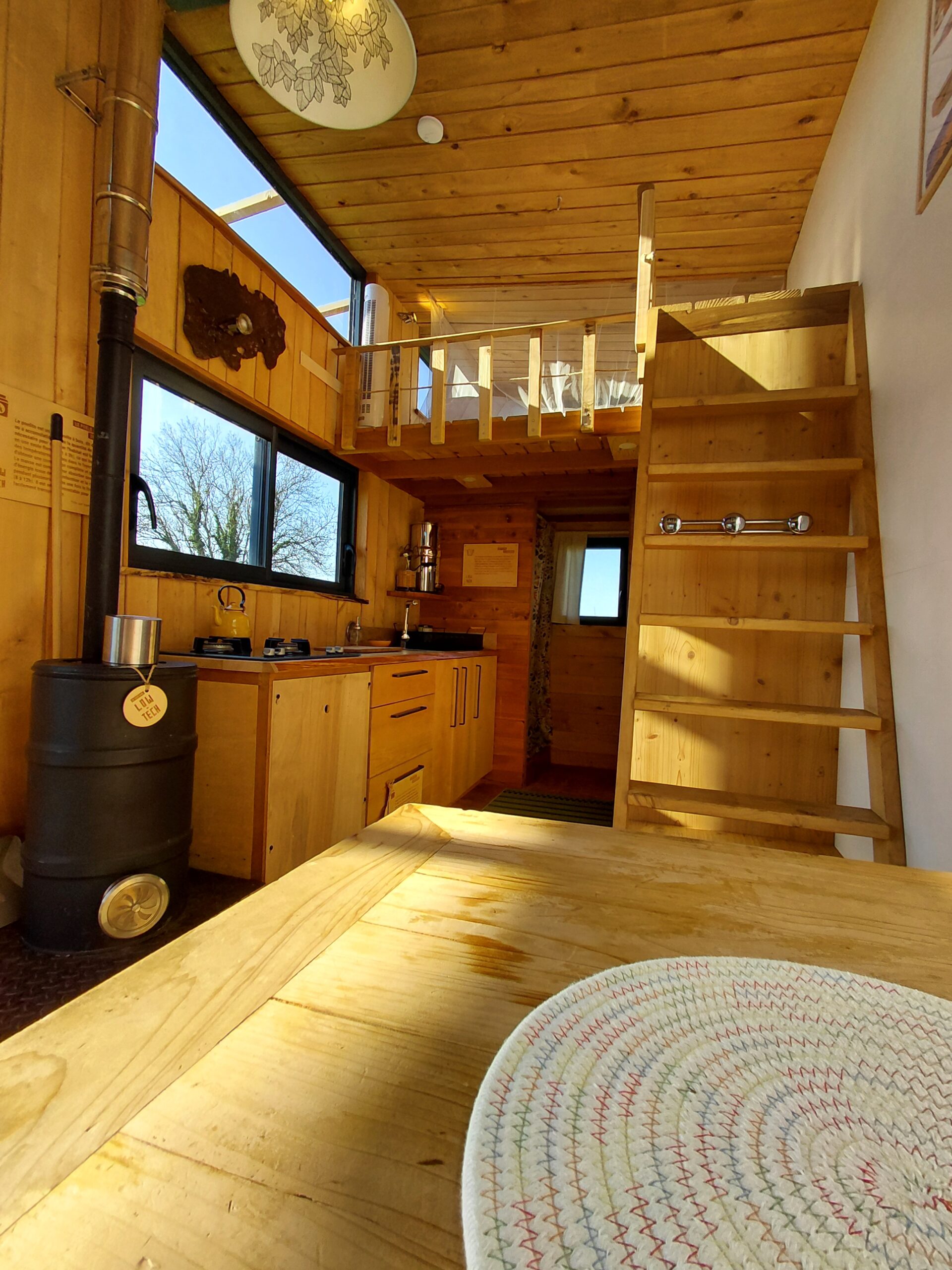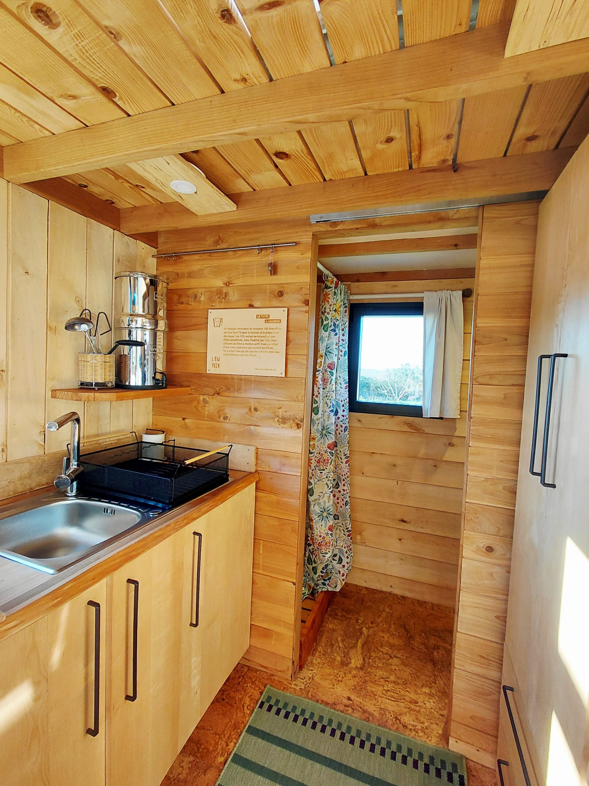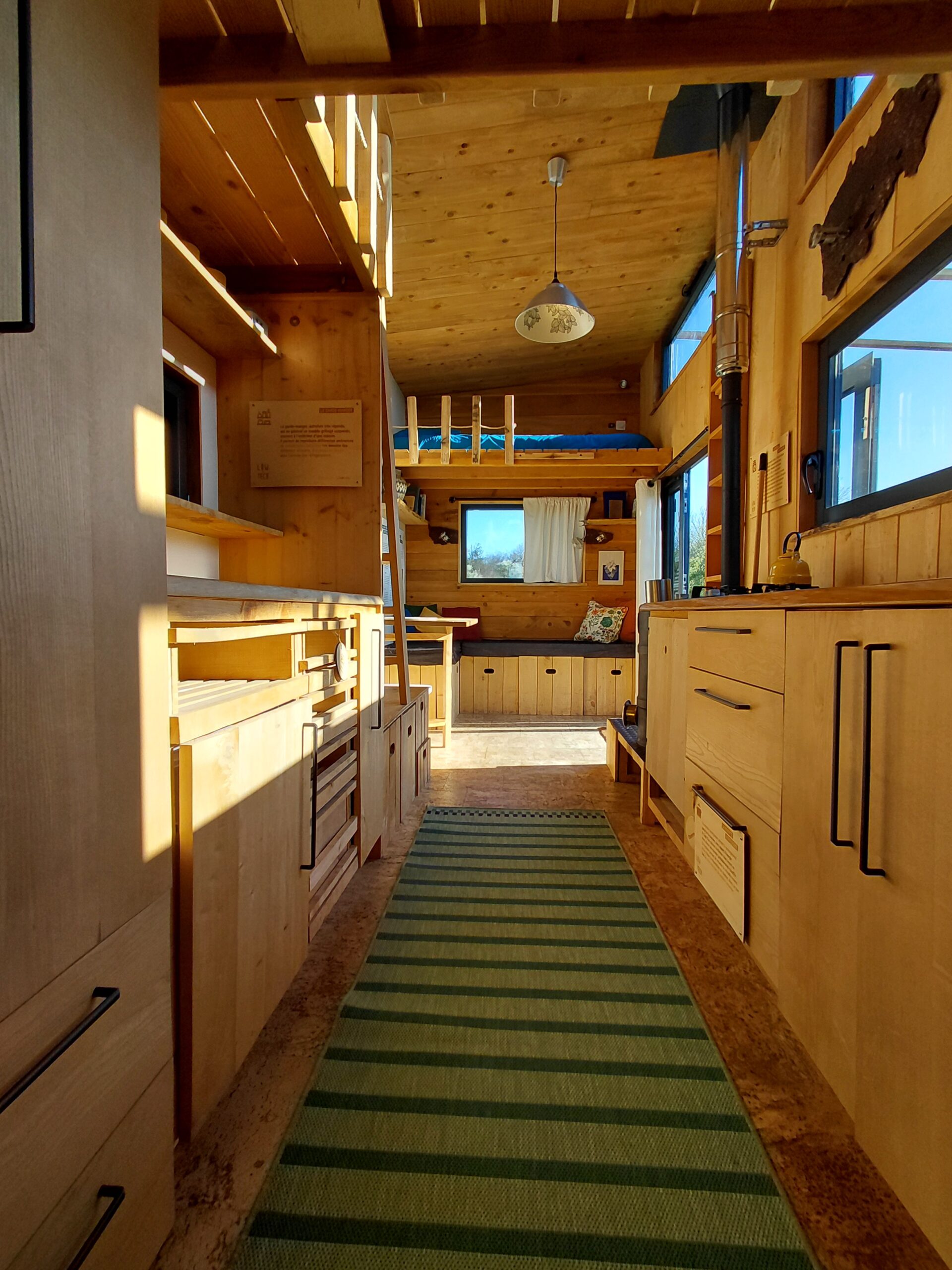 La salle d’eau mêle confort et conscience : douche chaude, toilettes sèches, lavabo dans la cuisine — un équilibre subtil entre modernité et sobriété.