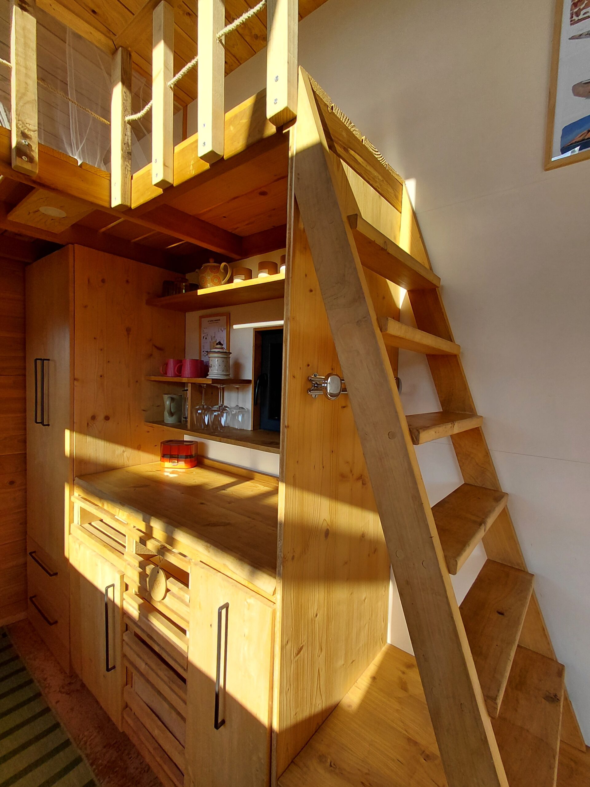 • un lit double en mezzanine (140×200 cm) où l’on s’endort avec la sensation de flotter,