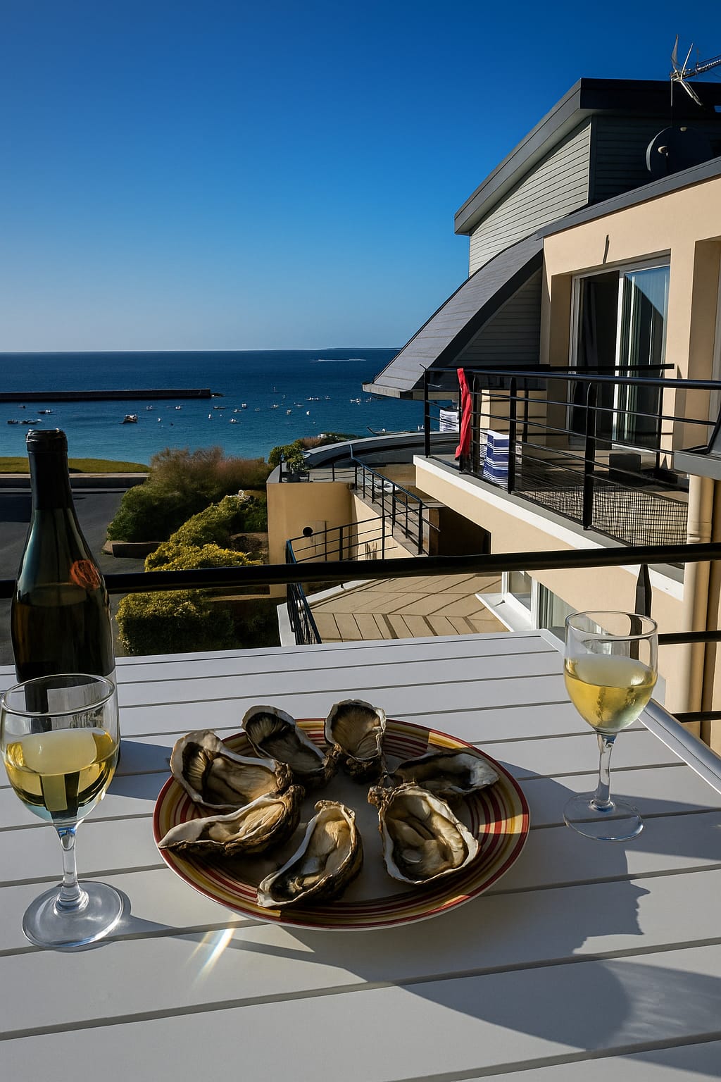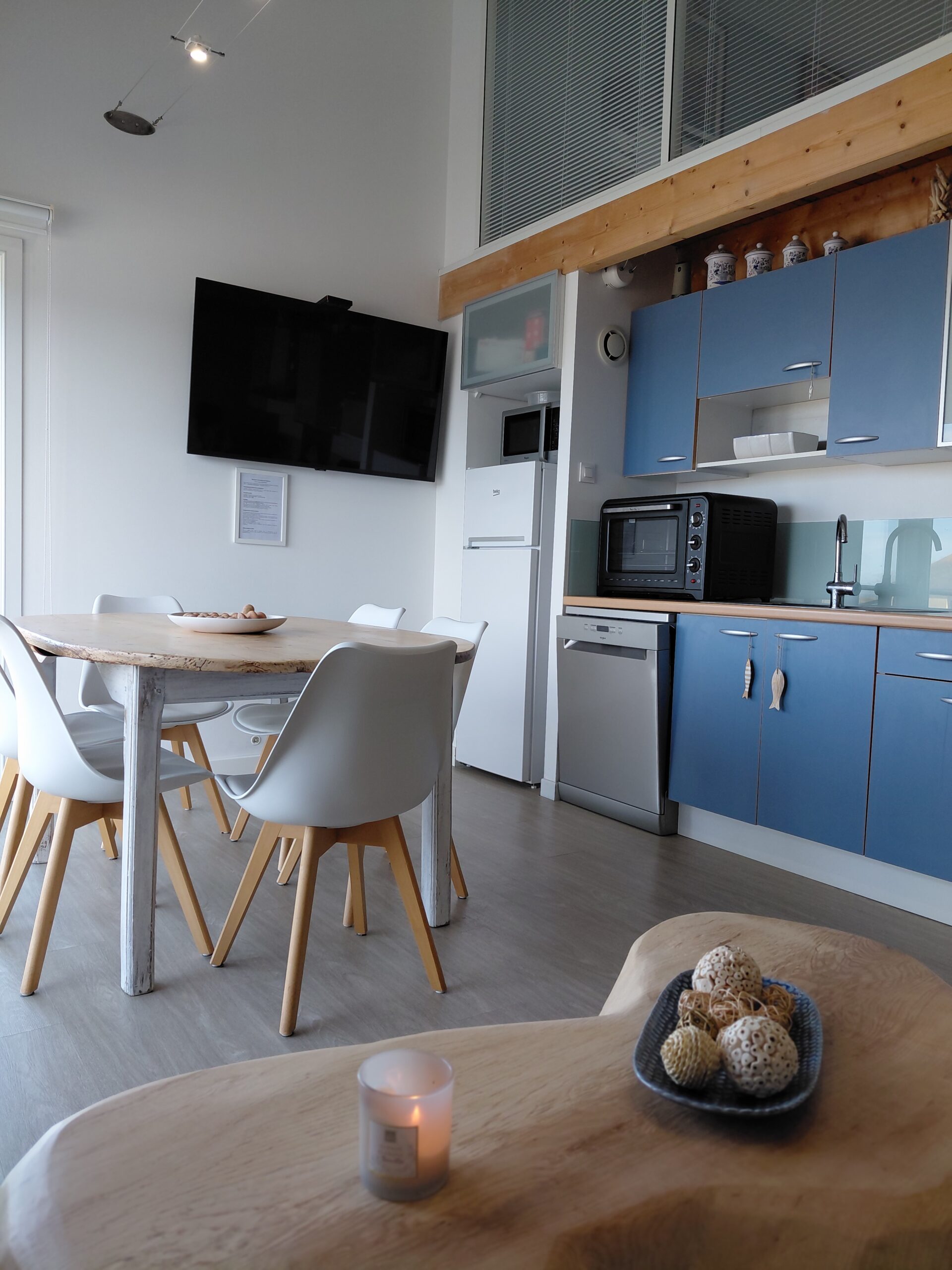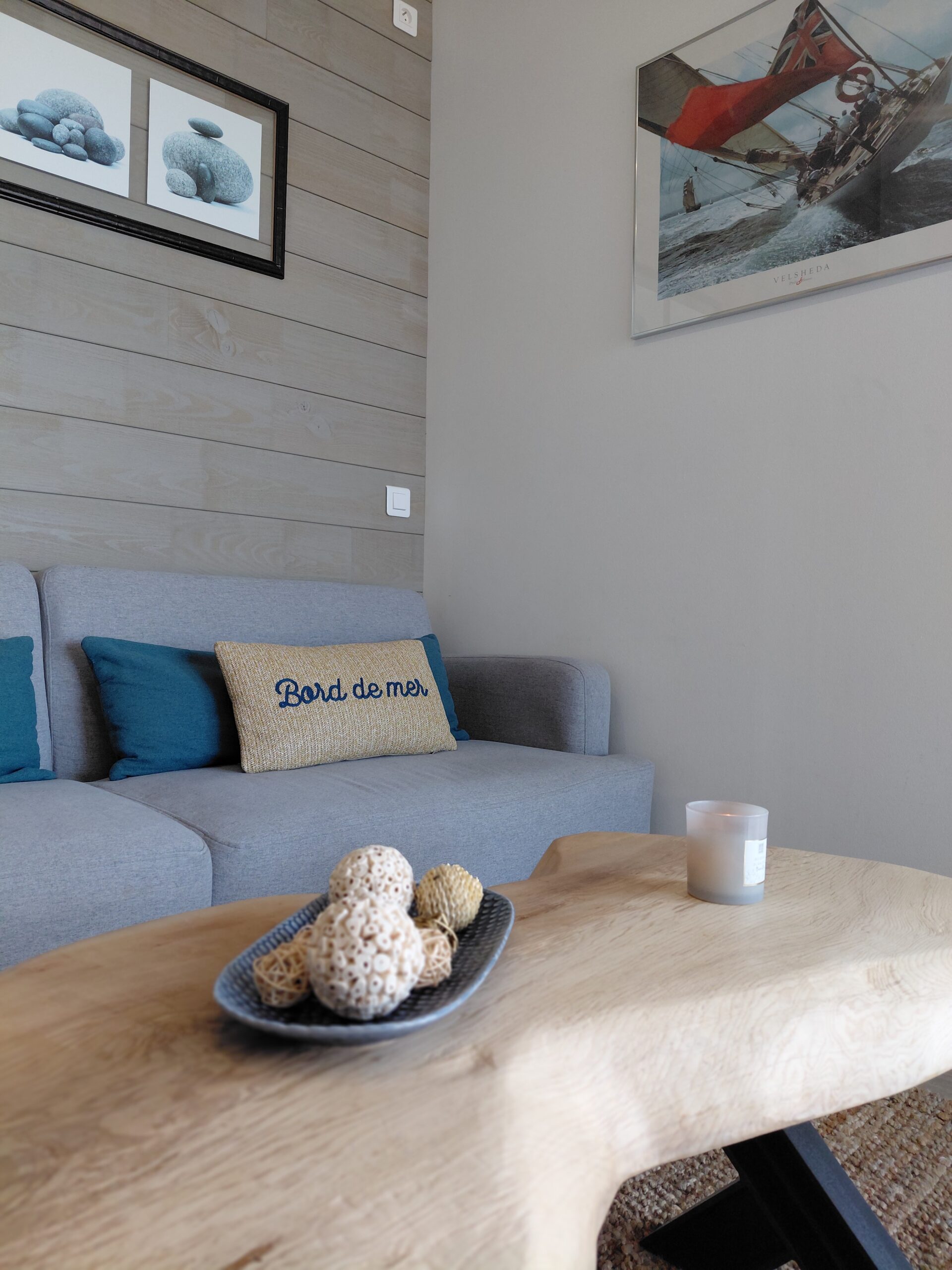 L’intérieur conjugue confort moderne et ambiance bord de mer : mobilier épuré, teintes douces, équipements complets… tout est réuni pour un séjour serein, que ce soit en duo, en famille ou en télétravail inspiré. La pièce de vie s’ouvre sur une terrasse ensoleillée, idéale pour les petits-déjeuners face à l’océan ou les apéros au coucher du soleil.